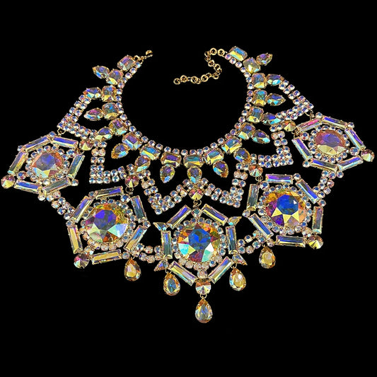 AB Color Geometric Necklace Accessories Exaggerated Jewelry Luxury Crystal