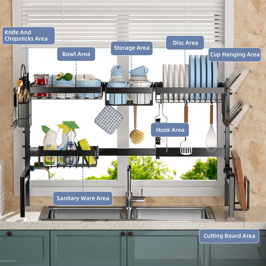 2 Tier Adjustable Over The sink Metal Steel Dish Drying Racks